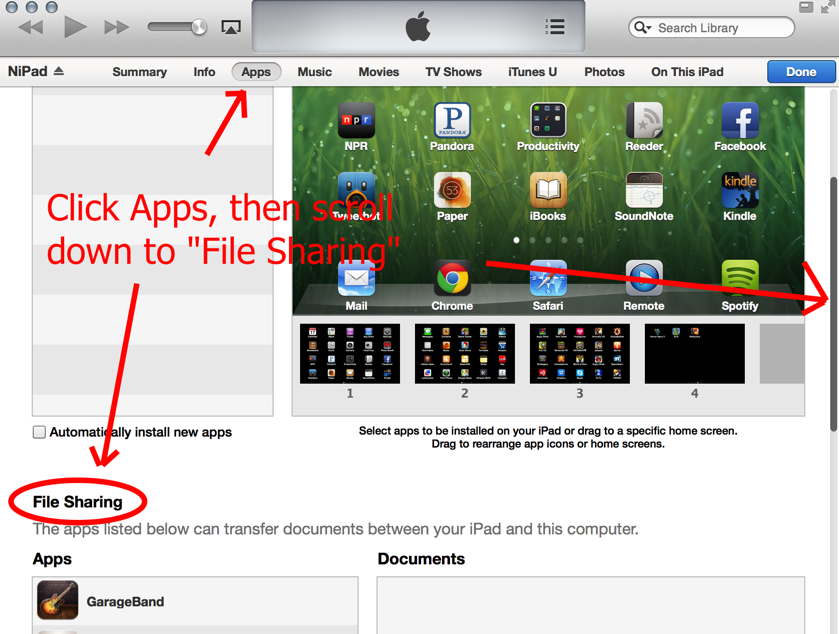 Connect your iPad to your computer and select it from the top-right button in iTunes.