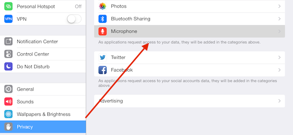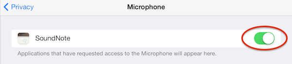 For privacy reasons, iOS 7 sometimes disallows apps from using the microphone. To allow SoundNote to access your microphone, go to the "Settings" app, then select "Privacy"->"Microphone." Make sure SoundNote is enabled in that list.